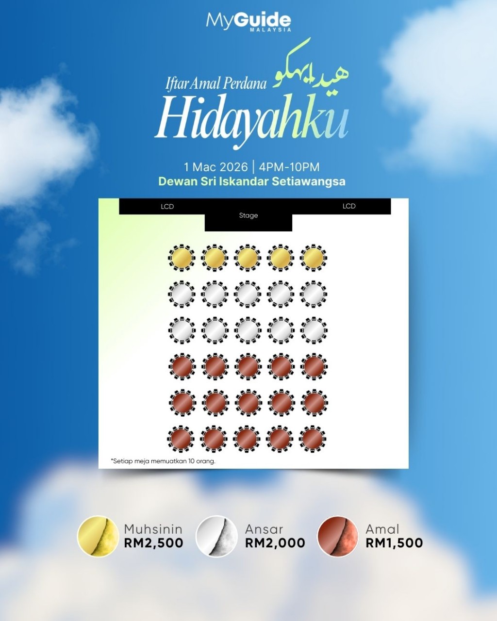 Iftar Amal Perdana Hidayahku is an iftar event organised by MyGuide Malaysia, aimed at fostering unity through ukhuwah and charitable efforts.